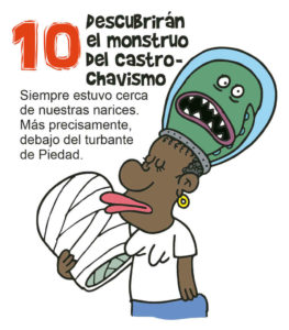 Pour en finir avec les incroyables attributs du phantasme du « castro-chavisme, » celui-ci est à présent coupable de la poursuite de la guerre en Colombie. Que Santos ait quitté la table de négociations avec l’ELN, qu’ Uribe ait dirigé la campagne pour le « Non » aux accords de paix avec les FARC-EP ou que l’Etat soit incapable de respecter ces accords n’a rien à voir.