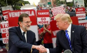 Malheureusement, l’Europe s’est mise à la queue, derrière le Gouvernement suprémaciste des États-Unis et c’est vraiment dommage parce qu’elle était restée longtemps loin des principes qui fourmillent dans le Gouvernement du président Donald Trump. Il semblerait que Trump donne des ordres et qu’immédiatement certains Gouvernements parmi lesquels en particulier le Gouvernement espagnol de Mariano Rajoy obéissent parce que tant de contradictions ne peuvent pas être expliquées.