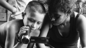 Le camion chargé à ras-bord de sacs, vidéoprojecteur, bout de matelas, cadre de lit, et d’une équipe féminine de l’Ecole Populaire et LatinoAméricaine de Cinéma et de Théâtre, a laissé derrière lui la route de goudron de Guanare dans l’Etat de Portuguesa et s’engage dans les chemins de terre. Le soleil se couche doucement sur les collines au fond de cette plaine agricole du cœur du Venezuela et les premières lucioles commencent à scintiller dans les arbres. Entre un cadre de lit et deux dos d’âne, on s’échange des tartines de fromage blanc en riant. Puis une étoile s’allume, puis une autre, puis c’est la lune.