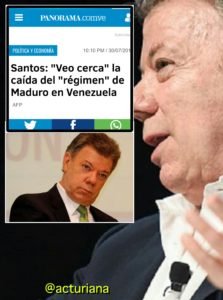 « Nous avons éclairci la situation dans un temps record : il s’agit d’un attentat visant à me tuer et il n’y a aucun doute que tout désigne l’extrême-droite vénézuélienne alliée à l’extrême-droite colombienne. » Il a signalé que le nom de Juan Manuel Santos est derrière cet attentat » et il a rappelé que les faits se sont produits après que Santos ait déclaré qu’il « voit proche » son départ du pouvoir.
