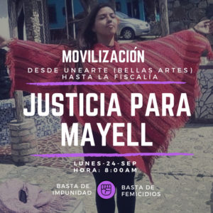 Dans le cas de Mayell, comme dans beaucoup d’autres féminicides une plainte antérieure avait été déposée mais le système n’a pas réglé sa situation de manière efficace et opportune. L’État a ainsi commis une violence institutionnelle contre Mayell, permettant au meutrier de commettre un crime et assurant ensuite son impunité. De même l’État est responsable de son silence sur Mayell et sur la problèmatique du féminicide.