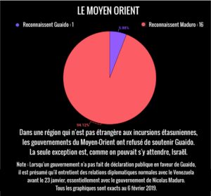 Le graphique montre un fossé très net entre le Nord et le Sud, à l’exception des gouvernements latino-américains alliés aux États-Unis. De plus, nous pouvons voir que les grandes puissances économiques du monde soutiennent Guaido. Il convient toutefois de noter que quatre des cinq pays du BRICS continuent à reconnaître Nicolas Maduro.