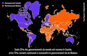 Seuls 25% des gouvernements du monde ont reconnu le Guaido, et les 75% restants continuent à reconnaître le gouvernement élu de Maduro.