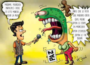 La position de Guaidó est celle qui partage sa base sociale : la promesse d’une sortie rapide, avec une intervention militaire qu’ils annoncent aussi rapide, chirurgicale, indolore, qu’ils imaginent pouvoir suivre au travers des réseaux sociaux, pour lui donner des likes et des retweets depuis leurs appartements. Cela fait partie de l’image qu’ils ont créée, la poétisation de la guerre à travers les jeux vidéo et les campagnes de communication. Certains, moins enclins à penser ainsi, acceptent la souffrance collective nécessaire qu’une intervention entraînerait, une sorte de traversée du désert nécessaire.