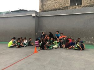 A part cela, on parle peu de politique entre les jeunes, dans le cadre du foot. Il s’agit d’une activité sportive. Ils viennent, jouent, s’amusent, pleurent, bougent dans leur corps et dans leur tête, se font des amis, forment une famille. Puis repartent. Ils reviendront s’entraîner pour un championnat ou simplement pour se sentir bien, se sentir meilleurs ; ils organisent des discussions, des séances d’entraînement. Les plus grands forment les plus petits.