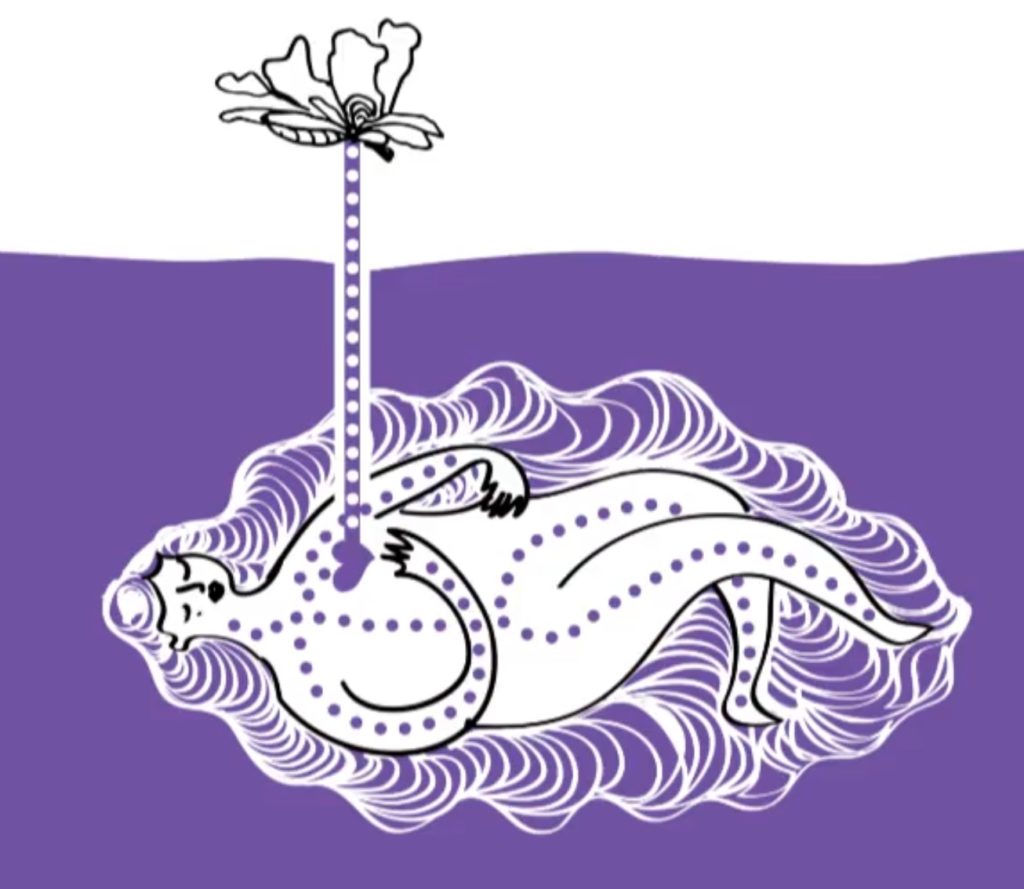 Père, mère, fils et fille sont sortis pour s’asseoir dans le sable. Ils creusèrent des tunnels qui atteindraient des mondes imaginaires et firent des châteaux de sable pour des princesses inexistantes. Papa enterrait maman et les enfants cherchaient de l’eau pour que le sable se solidifie et que maman ne puisse pas s’échapper si facilement. Le jeu a été répété à plusieurs reprises : déterrer, arrêter de jouer, courir à nouveau pour se baigner afin d’enlever tout résidu de sable du corps, puis le recouvrir à nouveau avec lui.