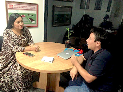 Au fil des présentations, elle nous demande « l’interview est en audio ou en vidéo? ». Comme nous lui indiquons que nous allons la filmer, elle sort immédiatement de son sac une petite trousse de toilette, et ajuste son maquillage en nous glissant : « je suis indigène mais femme aussi. On reviendra sur les stéréotypes qu’on nous colle à la peau depuis trop d’années ». L’interview s’annonce passionnante. Elle le sera.