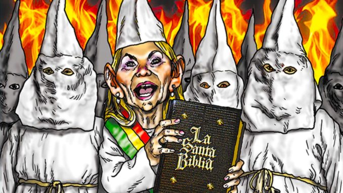 L’hypocrisie et la méchanceté se manifestent dans toutes les déclarations des ministres, dans l’utilisation du mot « sédition » qui aujourd’hui est synonyme de « partisan du MAS » qui serait le diable, la méchanceté. La lecture religieuse qui a couvert le langage fasciste pervers n’a pas pu rester cachée et se manifeste toute crue quand on fait des listes de « coupables, » quand on arrête des gens en toute illégalité et que la présomption d’innocence a été jetée aux ordures. L’hypocrisie se manifeste quand is déclarent tous les jours que leur unique mission est d’organiser des élections alors qu’ils démantèlent le modèle économique en utilisant des artifices de langage pour démontrer que la gestion de l’économie « pendant 13 ans » a été désastreuse, quand toutes les instances internationales y compris la Banque Mondiale ont accepté la bonne gestion et la croissance économique mises en place par Evo Morales.