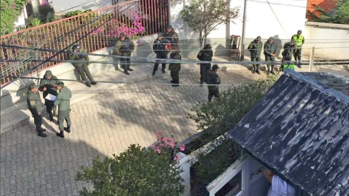 Le Mexique a dénoncé la Bolivie devant la Cour pénale internationale. La police et les militaires du gouvernement de facto de Jeanine Áñez poursuivent l’encerclement de l’ambassade et de la résidence de l’ambassadrice du Mexique à La Paz. L’agression du gouvernement de facto a commencé le 23 décembre, en violation du droit international afin d’intimider ceux qui sont réfugiés dans l’ambassade.