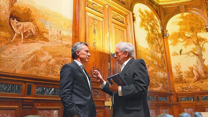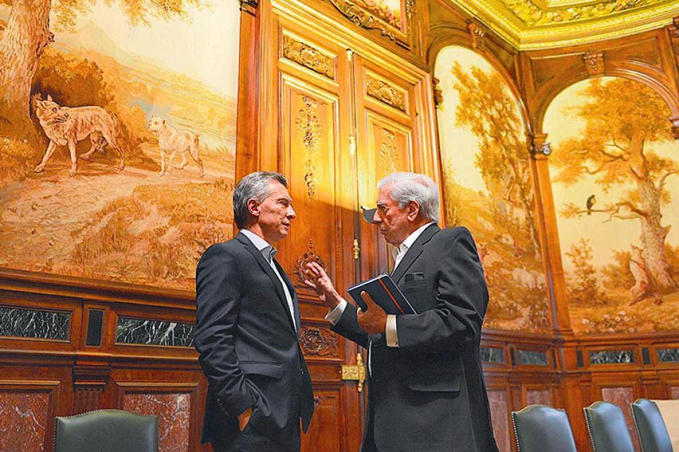 Mario Vargas Llosa (à droite) et l’ex-président argentin, Mauricio Macri