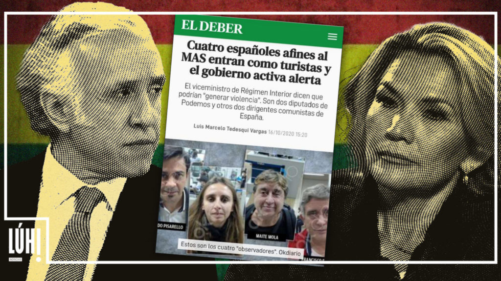 « Quand nous sommes arrivés, ce tweet de Murillo est sorti avec des messages intimidants aux observateurs. Peu après un « article » a été publié sur OKdiario qui montre que OKdiario, Vox et le Gouvernement et la Police boliviens sont en contact, parce que les images de nous qui ont été publiées proviennent du département des migrations et qu’il a été dit à tort que nous étions entrés comme touristes, alors qu’en fait nous avons explicitement dit que nous venions comme observateurs internationaux. Sinon, on ne peut expliquer que le Tribunal Suprême Électoral lui-même nous a accrédités, et que nous sommes actuellement accrédités », a expliqué M. Pisarello.