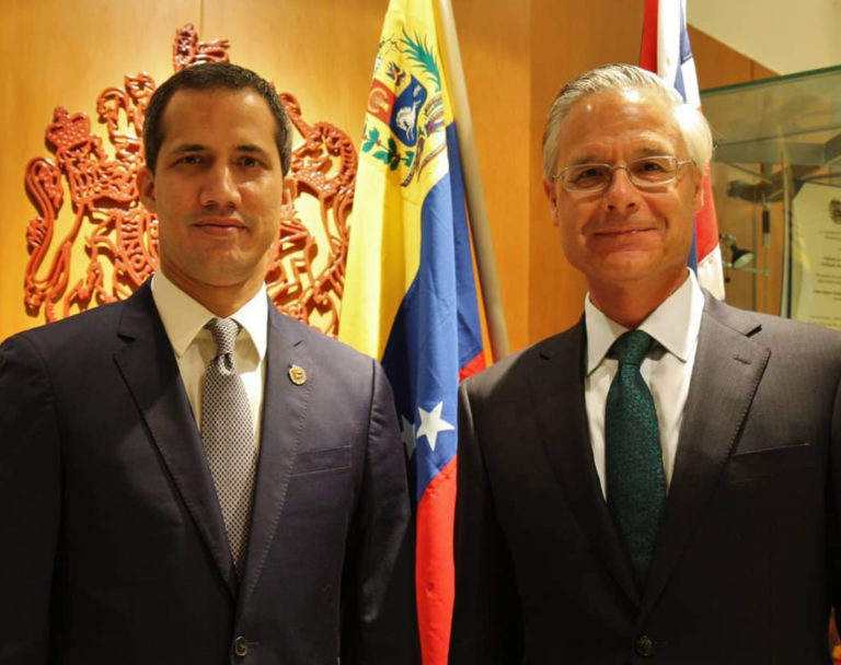 En février 2017, l’ambassadeur britannique au Venezuela, John Saville, a participé à un événement sur la « transparence » aux côtés de Guaidó. En mai dernier, Saville a été identifié comme le chef de l’unité de reconstruction du Venezuela du ministère des affaires étrangères, qui, selon le gouvernement vénézuélien, fonctionnait dans le secret. L’unité cherche ostensiblement à « conduire le Venezuela vers une résolution pacifique et démocratique » de sa crise politique actuelle.