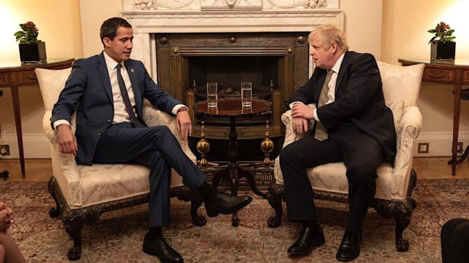 En février 2017, l’ambassadeur britannique au Venezuela, John Saville, a participé à un événement sur la « transparence » aux côtés de Guaidó. En mai dernier, Saville a été identifié comme le chef de l’unité de reconstruction du Venezuela du ministère des affaires étrangères, qui, selon le gouvernement vénézuélien, fonctionnait dans le secret. L’unité cherche ostensiblement à « conduire le Venezuela vers une résolution pacifique et démocratique » de sa crise politique actuelle.