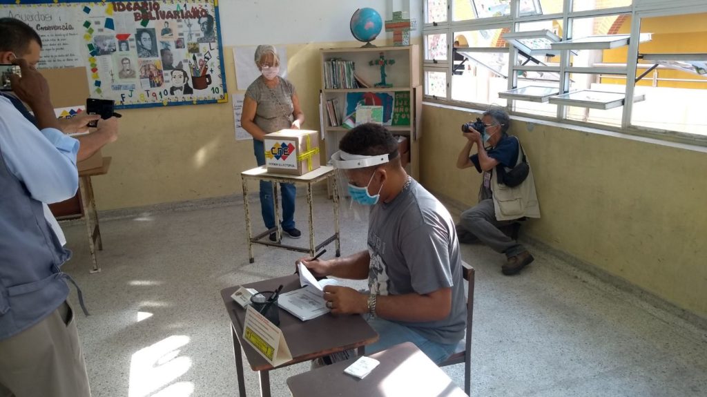 Tous les bureaux de vote sont gardés par l’armée à l’intérieur et par la police et la «Guardia Nacional», une sorte de gendarmerie, à l’extérieur du bureau de vote. De plus, dans les rues, vous pouviez voir la police presque partout, à n’importe quelle intersection ou station-service. Leur but était d’empêcher toute tentative violente de boycotter l’élection, mais aussi d’inspirer confiance dans le vote. Le Venezuela a l’un des taux de criminalité violente les plus élevés de la région. En février 2020, un groupe d’extrême droite a incendié le hangar où étaient stockés les machines des bureaux de vote, détruisant la majeure partie de celles-ci, dans le but de boycotter le processus électoral au Venezuela.