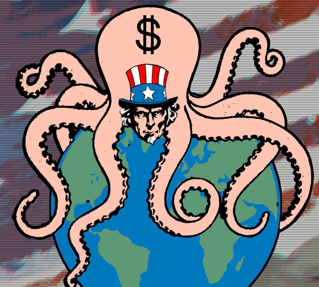 Les États-Unis tentent de retrouver leur domination mondiale en perte de vitesse en s’emparant des richesses, en réprimant les rébellions et en dissuadant leurs concurrents. Elle soutient cette opération avec une puissance militaire gigantesque et une économie d’armement lourd.