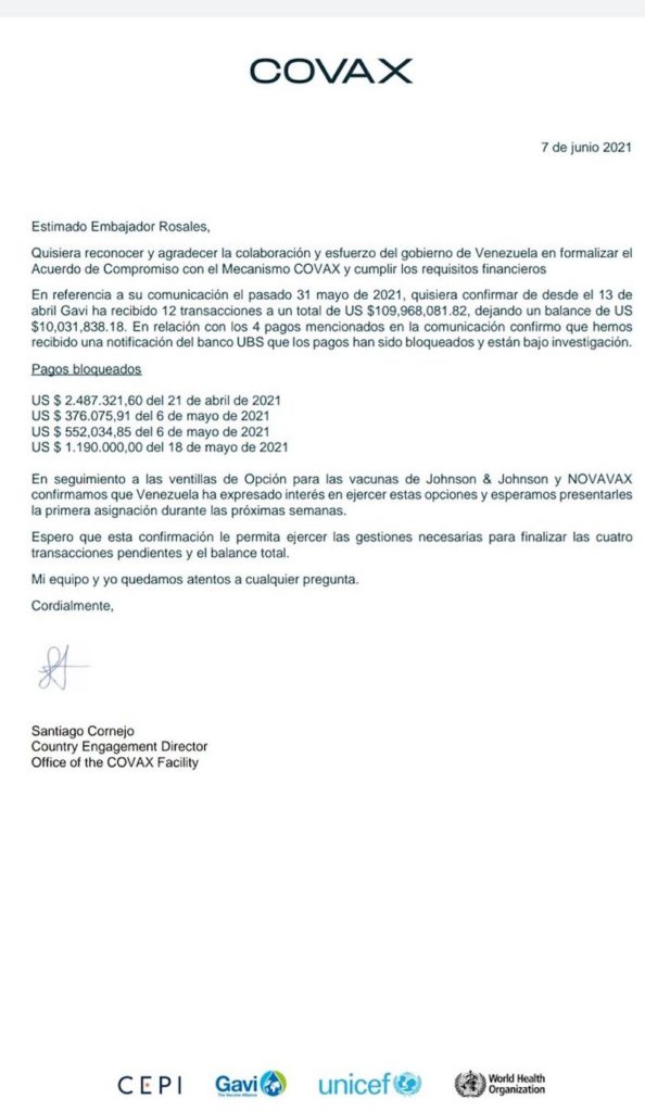 UBS, une société suisse de services financiers basée à Zurich, a bloqué plus de 4,5 millions de dollars que le Venezuela a transférés au fonds Covax pour l’achat de vaccins contre le coronavirus.
