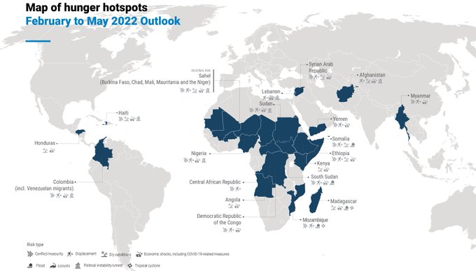 Les deux organisations ont publié un rapport mondial sur l’insécurité alimentaire, intitulé Hunger Hotspots, qui vise à analyser la situation actuelle dans le monde en ce qui concerne la faim aiguë et la projection du problème en 2022.